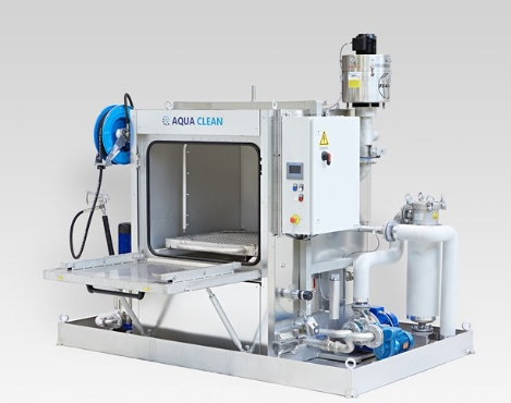 该清洗过程是在带有内置喷嘴的旋转喷淋系统中进行的。将加热的清洗液从各个方向喷到工件上, 具有很好的清洗效果。之后清洗液通过过滤系统, 循环回储液槽中。清洗机的所有维修点都很简单并易于操作。